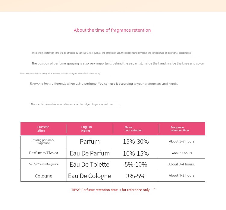 Perfume classification: Eau de toilette EDT